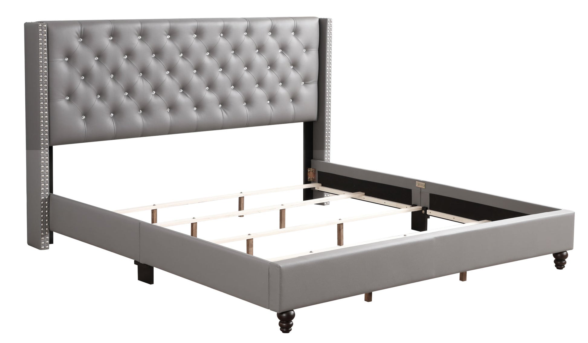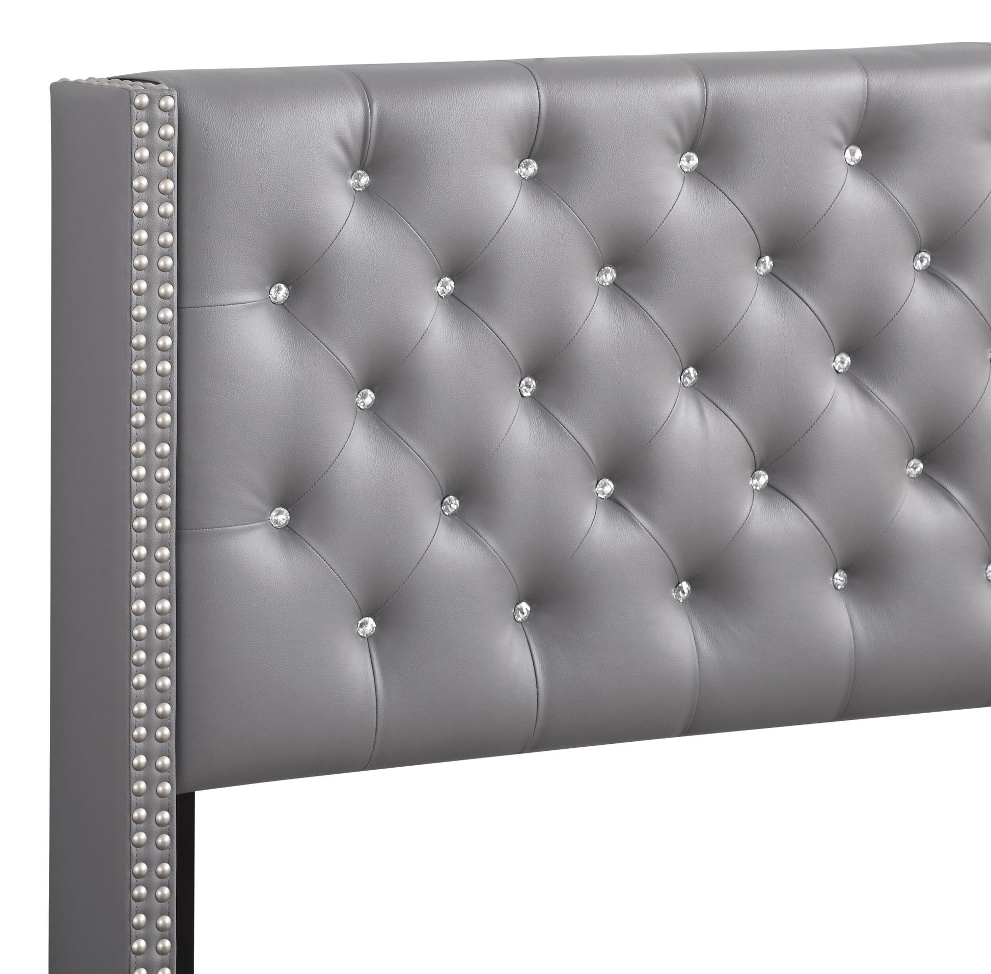 Upholstered bed Featuring Deep Tufting and Nailhead Trim