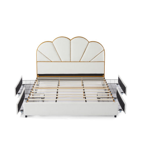 2 Upholstered Smart Platform Bed with 4-Drawers