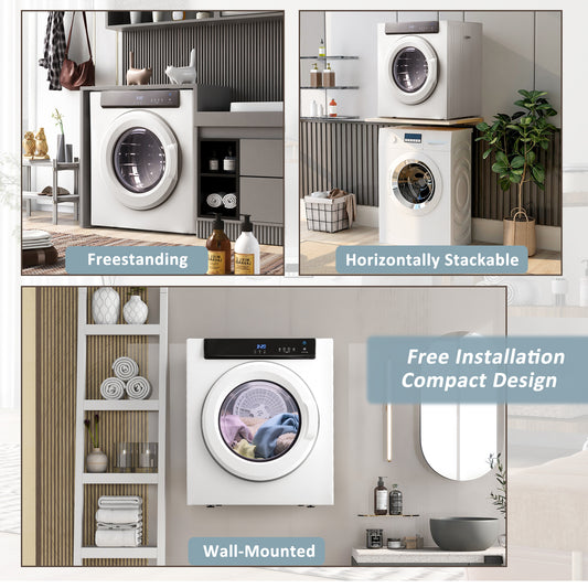 No need to worry about the newly added dryers being nowhere to be placed and taking up too much space. This compact and powerful electric dryer has a straight shape, can be neatly stacked on the washing machine, can also be installed on the wall or placed separately. This provides more placement options and saves space in small laundry rooms, apartments, dormitories, and other places.